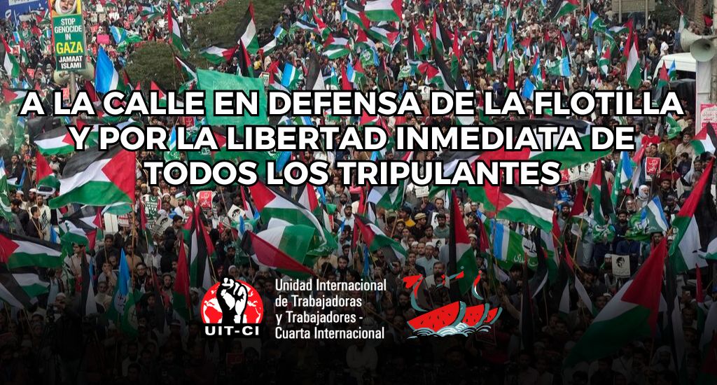 La Flotilla Global Sumud es una de las más grandes de la historia, integrada por 50 embarcaciones de 44 países, integrada por personalidades como la activista ambientalista sueca Greta Thunberg, Ada Colau, ex alcaldesa de Barcelona, artistas, diputados y diputadas de diferentes países.  La flotilla ha sido apoyada ´por miles en el mundo. La UIT-CI también sumó su apoyo y en la embarcación Sirius eran tripulantes el diputado nacional Juan Carlos “Gringo» Giordano, de Izquierda Socialista (IS) de Argentina, que por una emergencia médica debió dejar la flotilla en la isla de Creta, de Grecia, y Ezequiel Peressini, también dirigente de IS y de la UIT-CI.