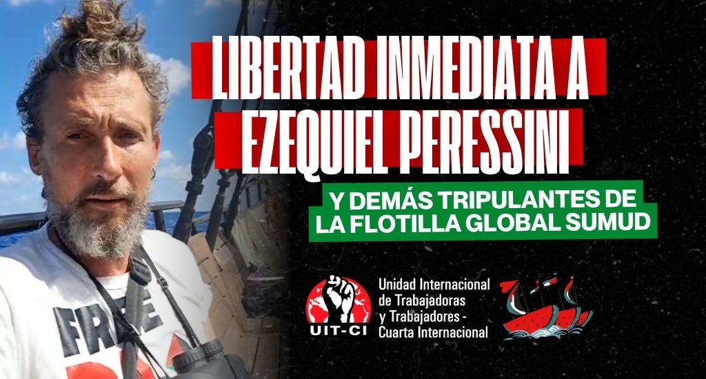 Desde la UIT-CI llamamos a redoblar la movilización para exigir la liberación inmediata de Ezequiel Peressini, que era tripulante del Sirius, y de todos los miembros de la flotilla secuestrados, que se informe sobre su situación y que se permita que los abogados y abogadas designados puedan actuar,