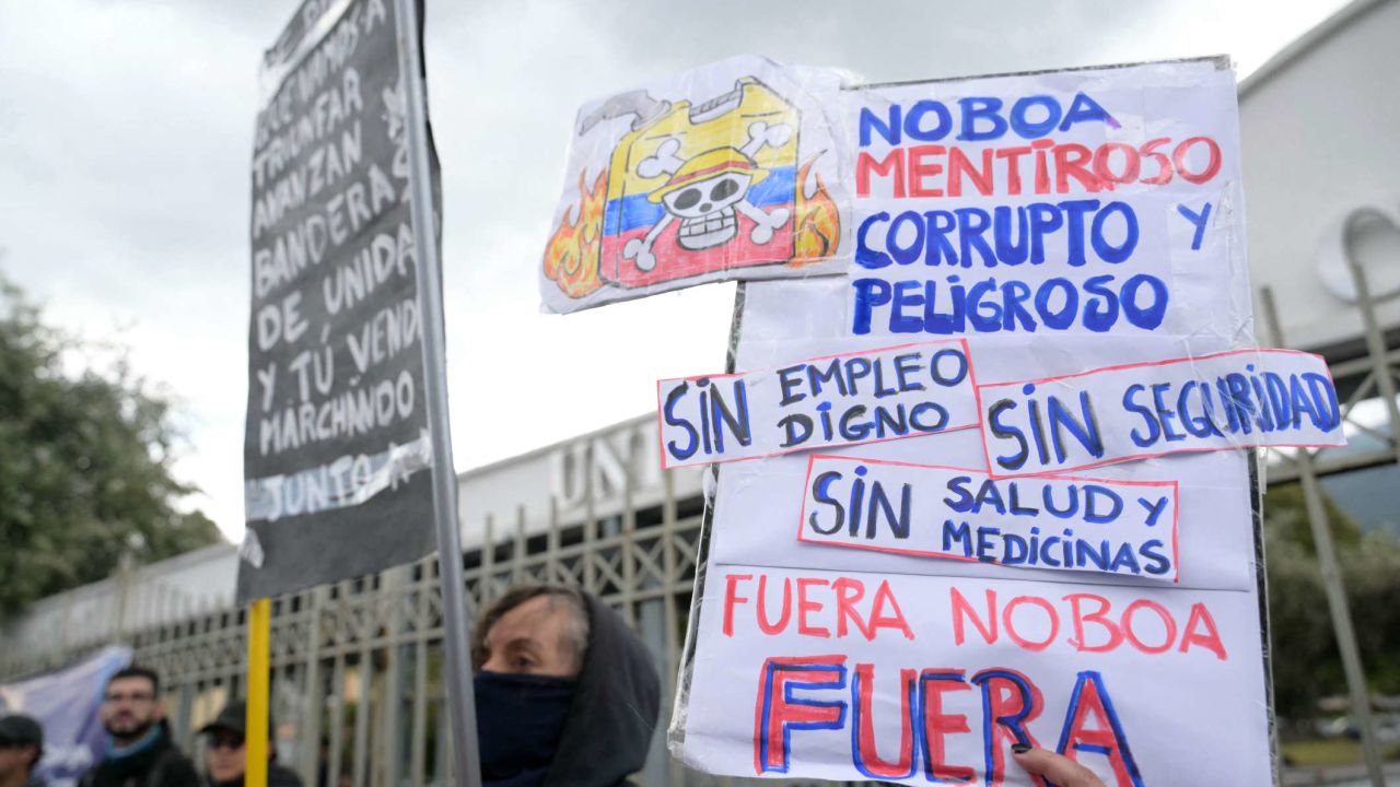 La grave crisis económica, social y ambiental está afectando gravemente al pueblo ecuatoriano. Por eso hubo recientemente grandes marchas populares, entre ellas las más importantes de organizaciones indígenas que enfrentan la destrucción ambiental. Y ahora eso se tradujo en un voto de repudio, con marchas anteriores con afiches “Fuera Noboa”.