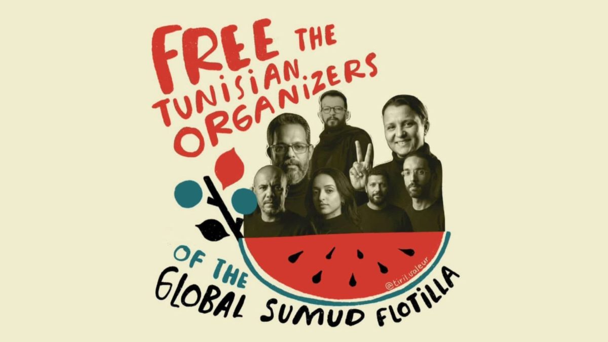 17/03/2026. Desde el pasado 6 de marzo un grupo de organizadoras y organizadores de la delegación tunecina de la Flotilla Global Sumud se encuentran detenidos y encarcelados. Las y los dirigentes Wael Nouar, Jawaher Channa, Nabil Chanoufi, Sana Msahli y Mohammed Amin Belnour fueron arrestados en un hotel de la localidad de Sidi Bou Said por la unidad de policía antiterrorista, según informaron en un comunicado de prensa.